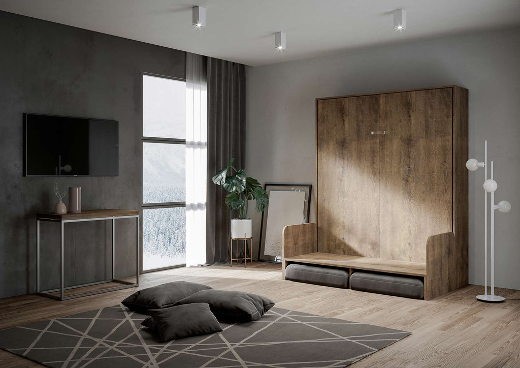 Letto Matrimoniale a Scomparsa Salvaspazio con Sofà Kentaro H210 cm Marrone