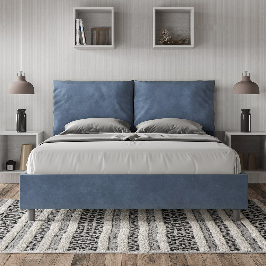 Letto Matrimoniale con Alzata Comoda Imbottito in Microfibra Antea Blu Varie Misure