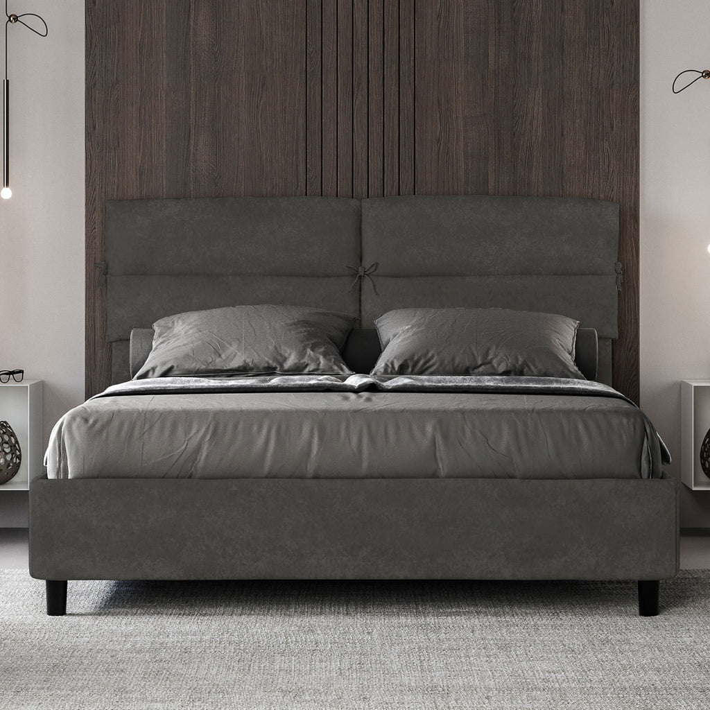 Letto Matrimoniale con Alzata Comoda Imbottito in Microfibra Nandy Grigio Varie Misure