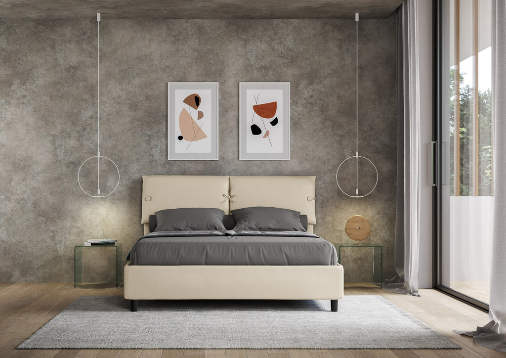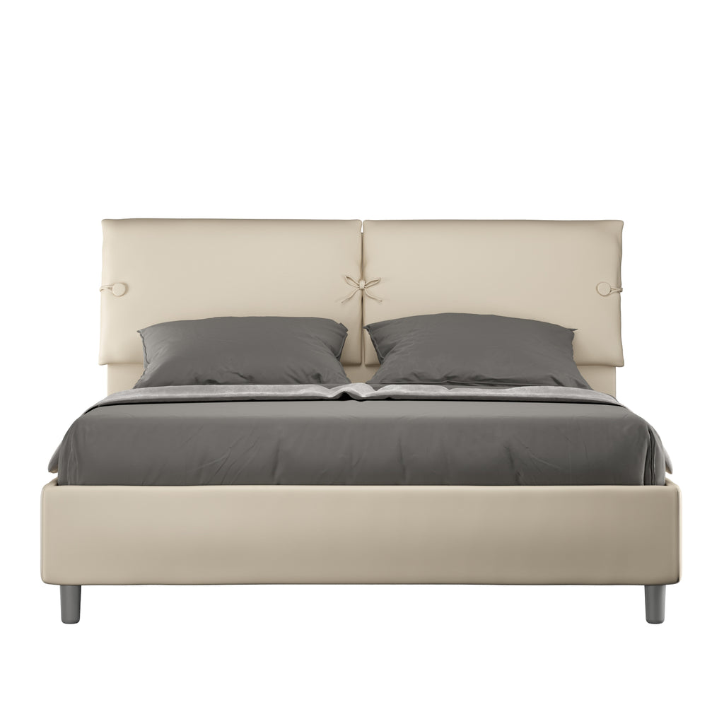 Letto matrimoniale in varie misure Sleeper con testata e Letto imbottiti, rivestimento in similpelle, particolarmente versatile e facilmente abbinabile a qualsiasi stile di arredamento. Il letto matrimoniale Sleeper è caratterizzato da uno stile elegante e raffinato grazie all'ampia cuscinatura presente sulla testata, è interamente rivestito in similpelle. La presenza del materiale in similpelle, oltre a donare alla stanza un'atmosfera accogliente ed invitante, offre la comodità di una pulizia facile e veloce, grazie all'utilizzo di un semplice panno in microfibra. Letto fornito con rete contenitore con doppia alzata. Rivestimento letto non sfoderabile.