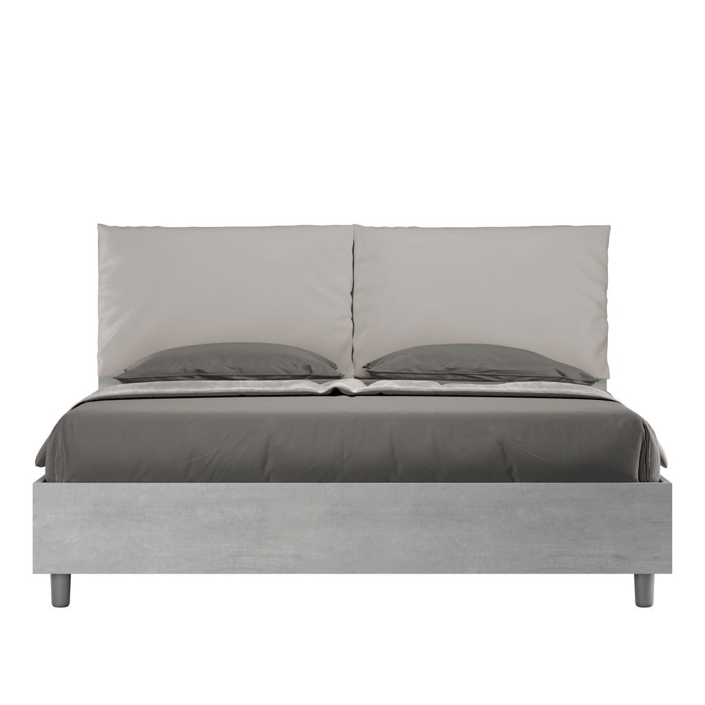 Letto matrimoniale in varie misure Egos Antea con testata e Letto in pannelli di nobilitato, con cuscini rivestiti in similpelle, particolarmente versatile e facilmente abbinabile a qualsiasi stile di arredamento. Il letto matrimoniale Egos Antea è caratterizzato da uno stile minimal e versatile grazie alle superfici semplici e lineari effetto cemento e alla cuscinatura rivestita in similpelle presente sulla testata. Grazie all'ampia cuscinatura in similpelle posizionata in cima alla testata, il letto è in grado di offrire il massimo comfort per la vostra postura. Questa combinazione conferirà alla vostra stanza un ambiente caldo ed accogliente. Letto fornito con rete contenitore con doppia alzata. Materasso non incluso. Rivestimento cuscini sfoderabile.