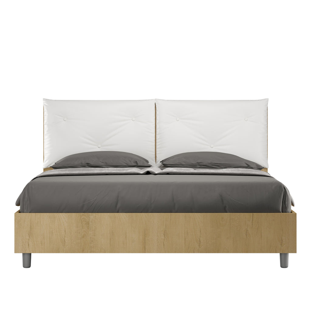 Letto Matrimoniale con Alzata Comoda Struttura Quercia con Cuscini in Similpelle Appia Bianco Varie Misure