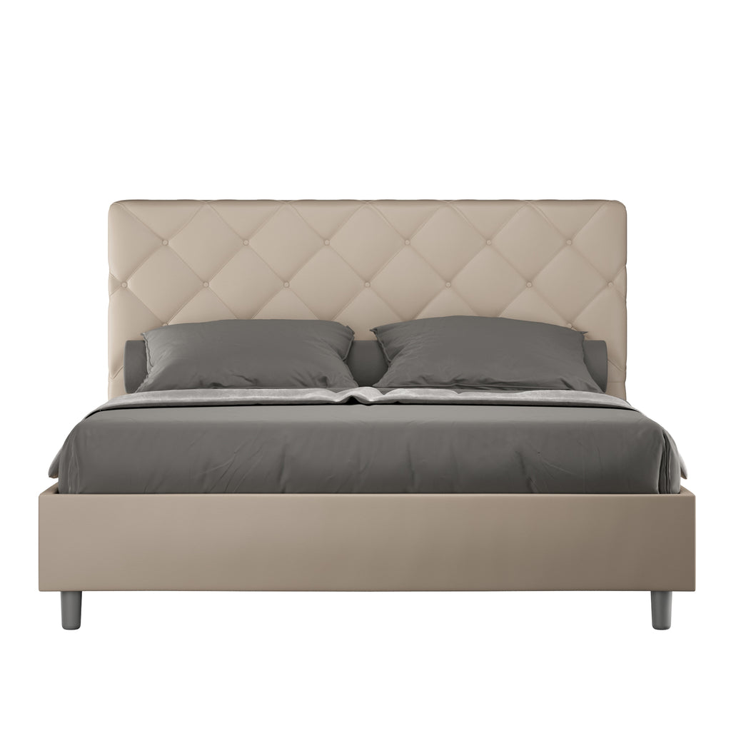 Letto Matrimoniale con Testata e Alzata Comoda Imbottito in Similpelle Priya Tortora Varie Misure