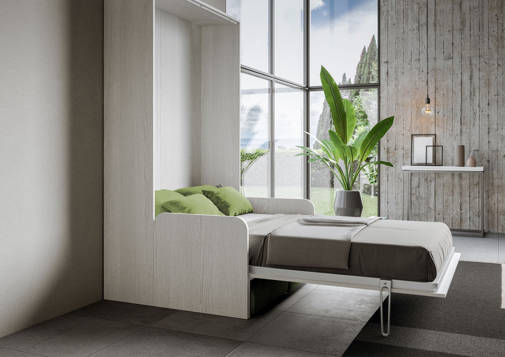 Letto Matrimoniale Francese A Scomparsa 140 Kentaro Con Divano Bianco Frassino e Verde