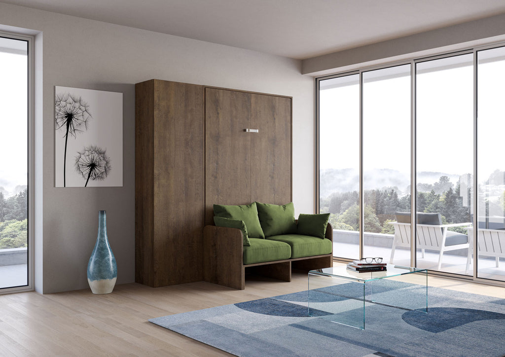 Letto Matrimoniale Francese A Scomparsa 140 Kentaro Con Divano E Colonna Noce e Verde