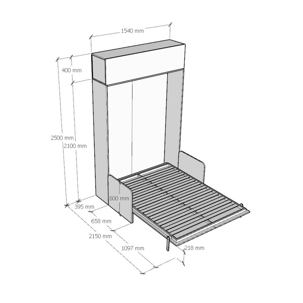 - Dimensioni: Composizione con letto chiuso: L.153,6 P.105,2 H.250,5 cm Composizione con letto aperto: L.153,6 P.215 H.250,5 cm Pensile: L.153,6 P.39,2 H.40 cm Altezza rete da terra: 22 cm Altezza massima materasso: 24 cm