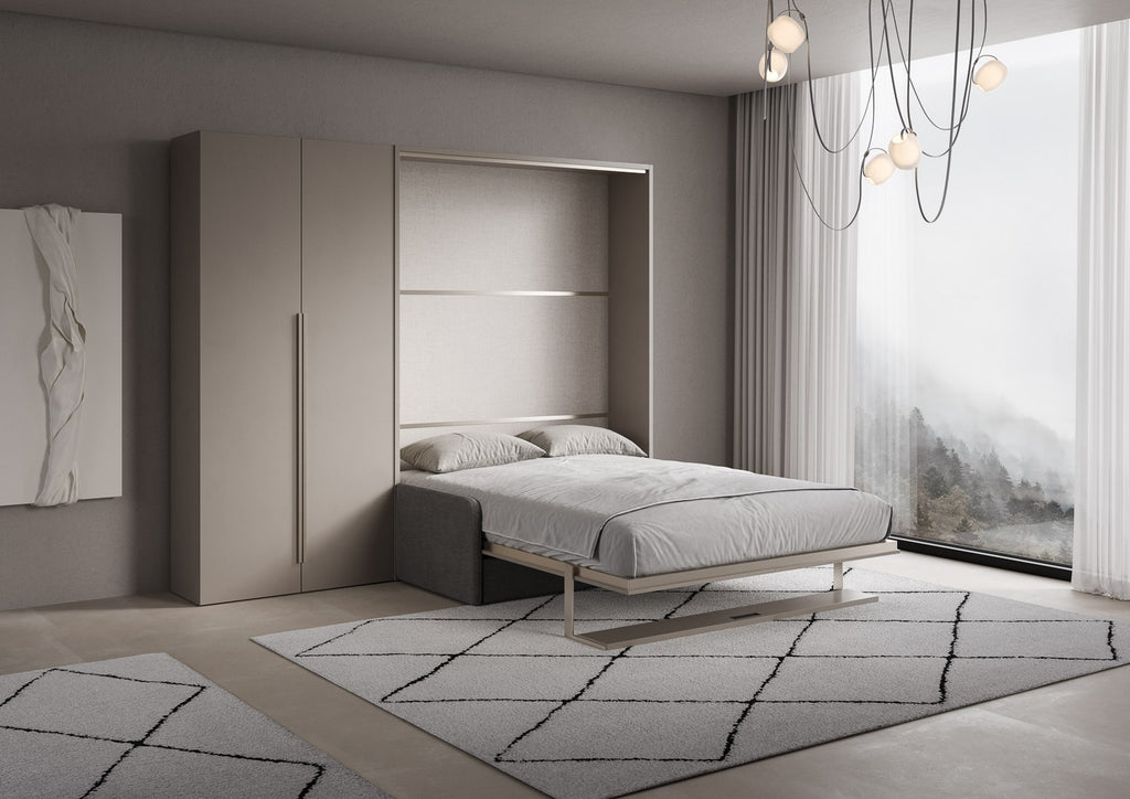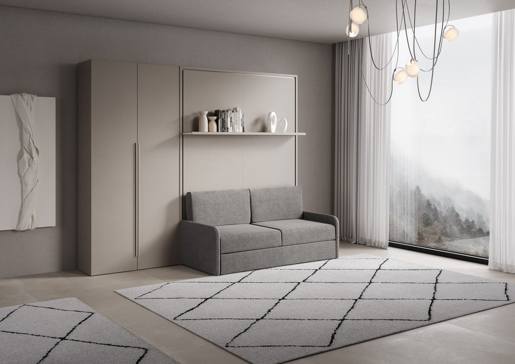 Letto Matrimoniale Francese A Scomparsa 140 Versia Con Divano Mensola E Armadio Sx 2 Ante Argilla