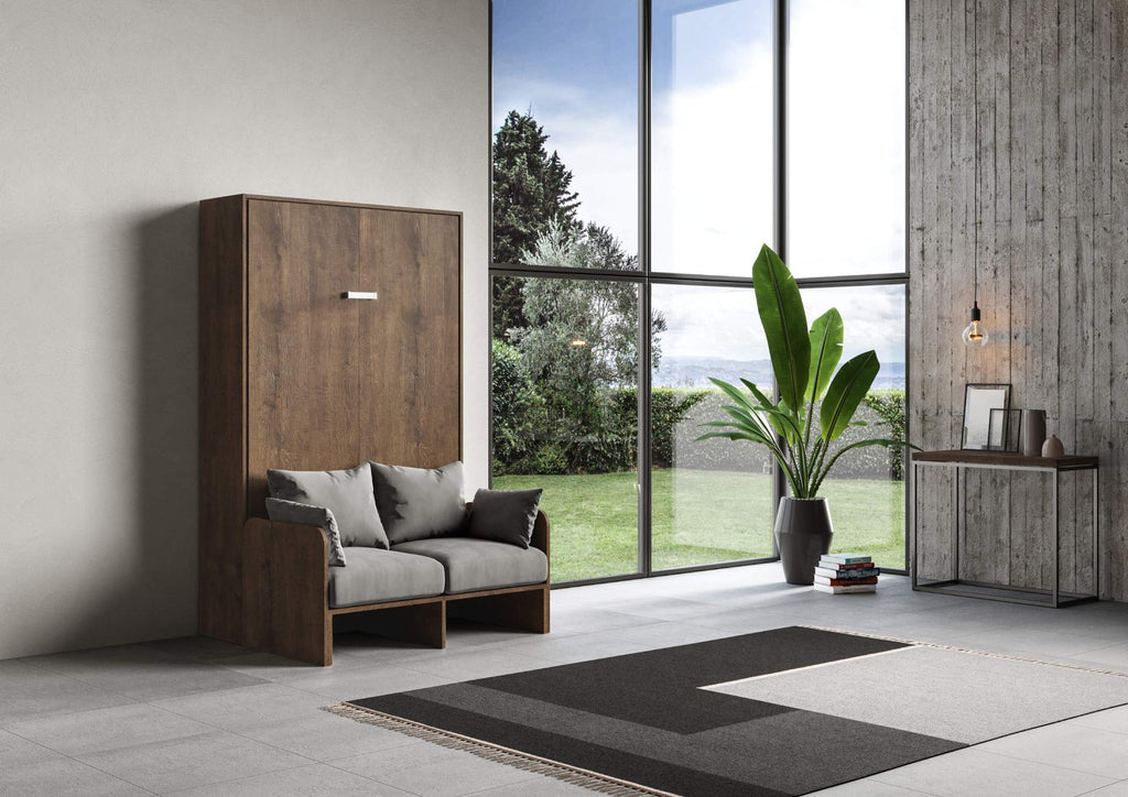 Letto Matrimoniale Francese a Scomparsa Salvaspazio con Sofà Kentaro H210 cm Marrone