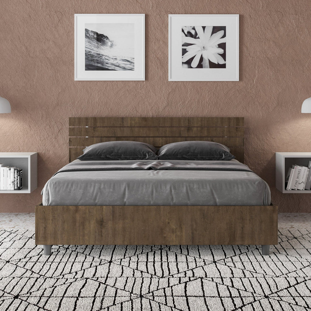 Letto Matrimoniale Francese 140x190 cm con Rete e Contenitore Ankel Testata Doghe Dritta Noce