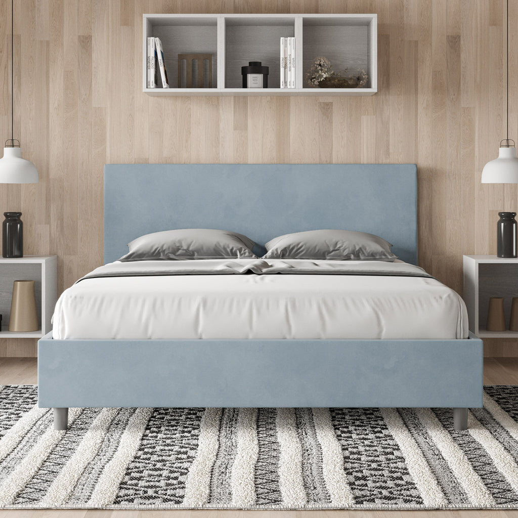 Letto Matrimoniale Giroletto con Alzata Comoda Imbottito in Microfibra Adele Azzurro Varie Misure