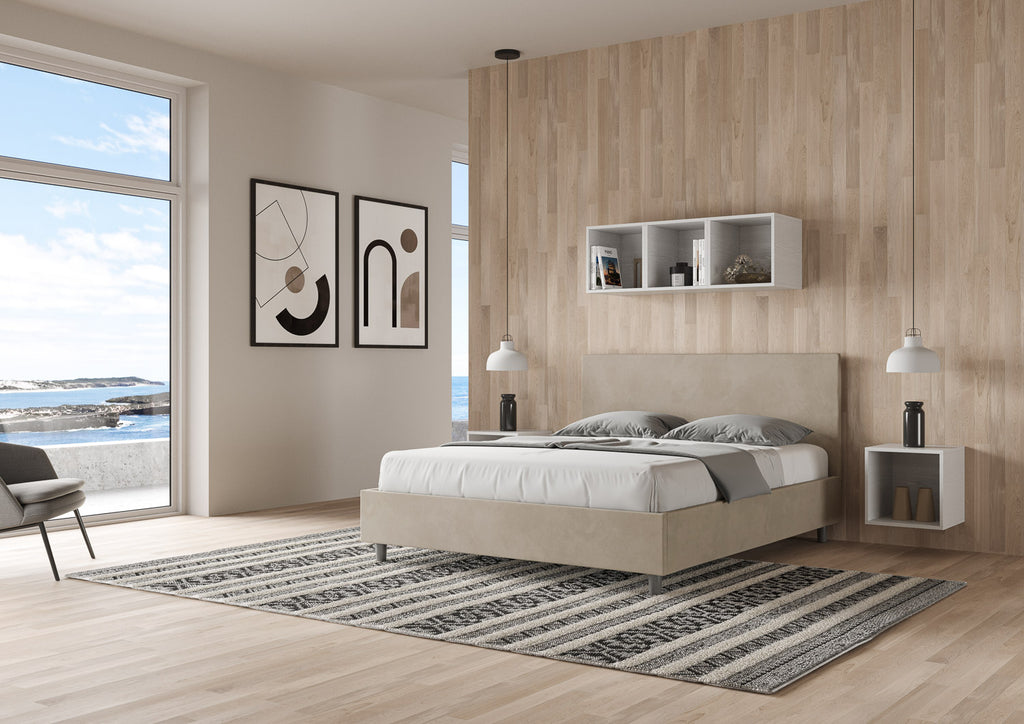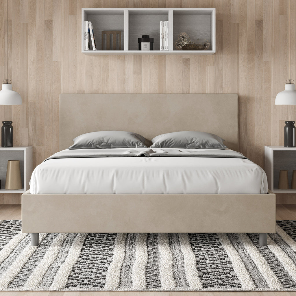 Letto Matrimoniale Giroletto con Alzata Comoda Imbottito in Microfibra Adele Sabbia Varie Misure