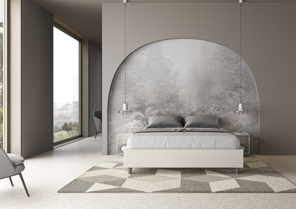 Letto matrimoniale in varie misure Azelia con letto imbottito, rivestimento in similpelle, particolarmente versatile e facilmente abbinabile a qualsiasi stile di arredamento. Il letto matrimoniale Azelia è caratterizzato da uno stile semplice e lineare che si accentua per la mancanza della testiera. La presenza del materiale in similpelle, oltre a donare alla stanza un'atmosfera accogliente ed invitante, offre la comodità di una pulizia facile e veloce, grazie all'utilizzo di un semplice panno in microfibra. Letto fornito con rete contenitore con doppia alzata. Rivestimento letto non sfoderabile.