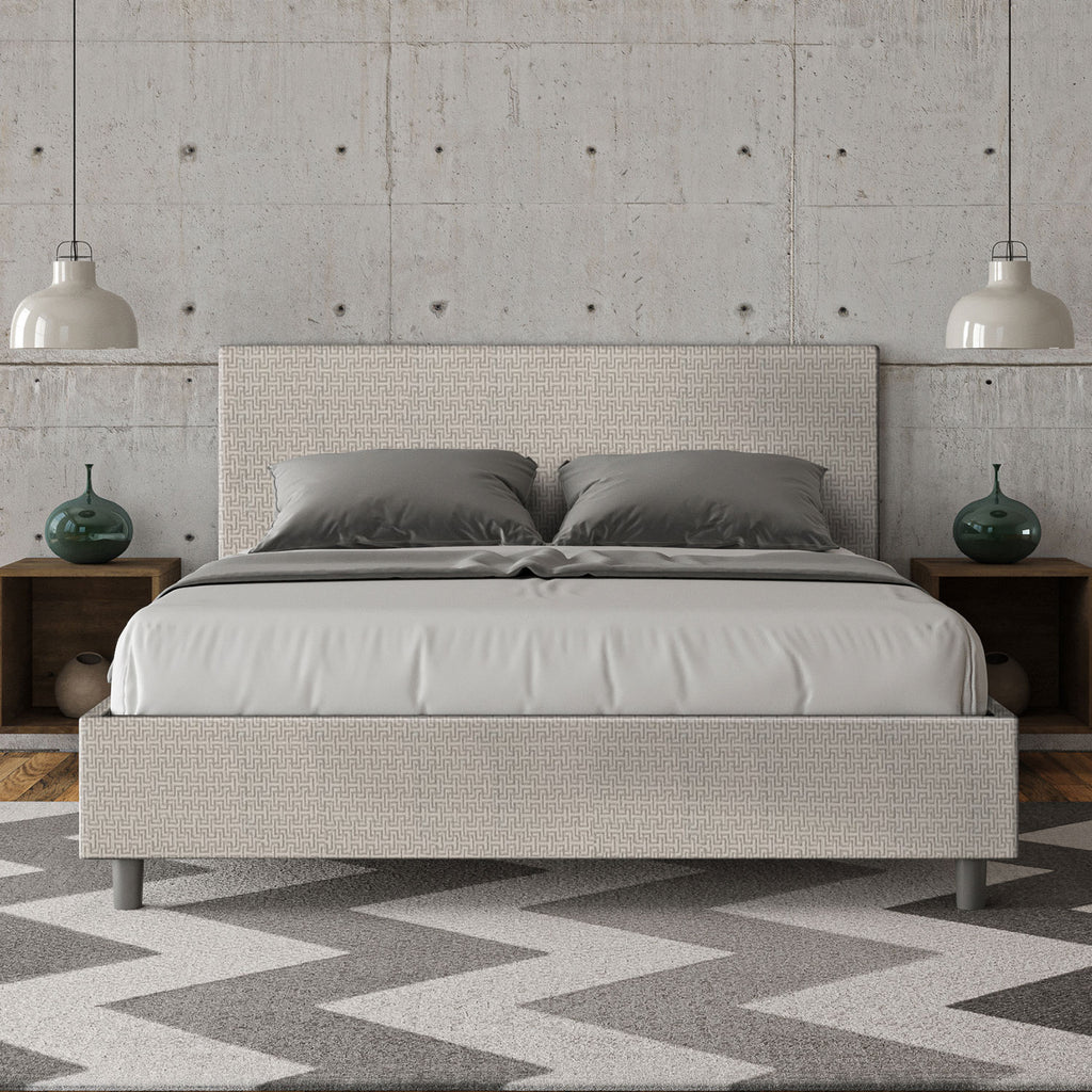 Letto Matrimoniale Giroletto con Alzata Comoda Imbottito in Tessuto Labirinto Adele Bianco Varie Misure