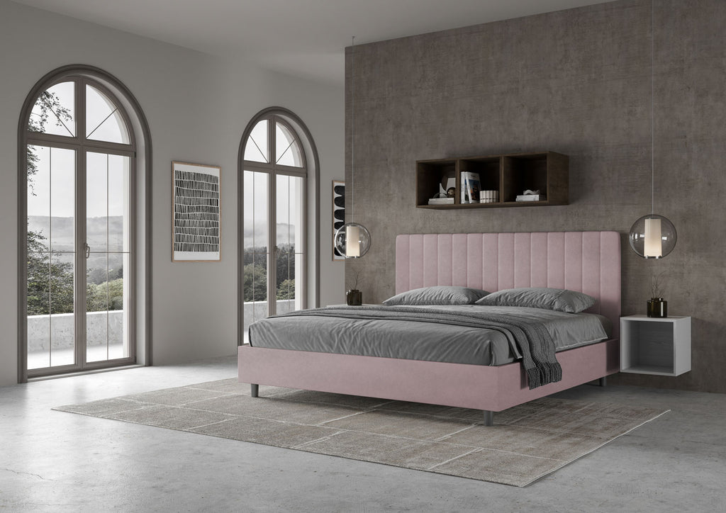Letto Matrimoniale Imbottito in Microfibra Agueda Glicine Varie Misure