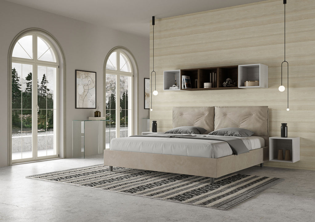 Letto Matrimoniale Imbottito in Microfibra Appia Large Sabbia Varie Misure