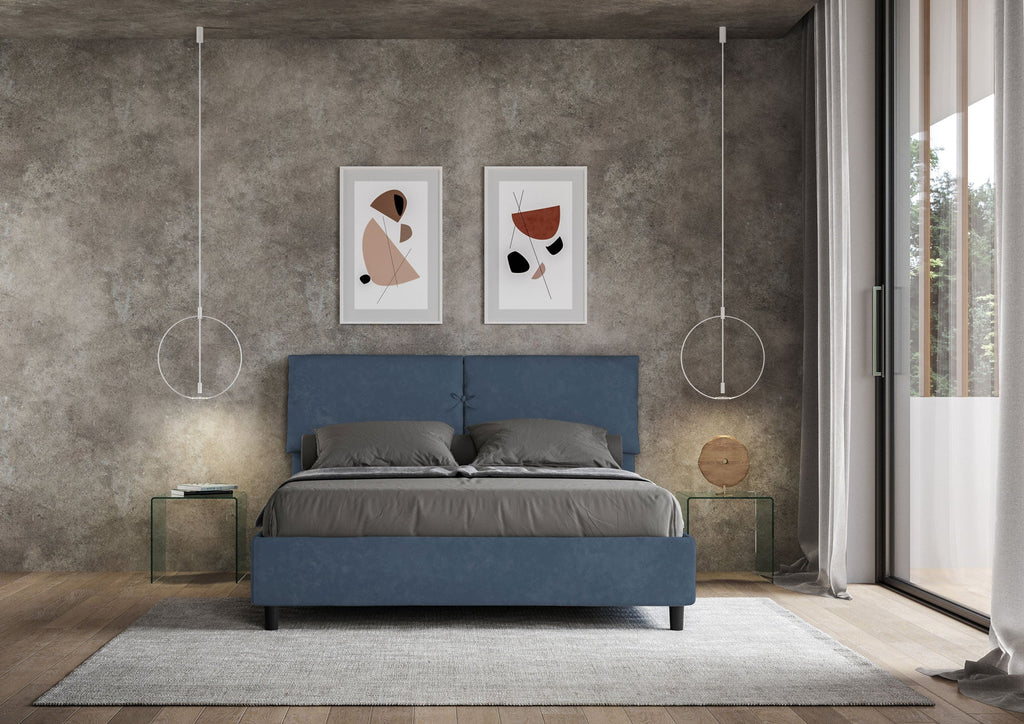 Letto Matrimoniale 160x190 cm con Rete Mados Blu