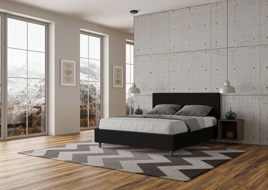Letto Matrimoniale Senza Testata Imbottito in Similpelle Adele Nero Varie Misure