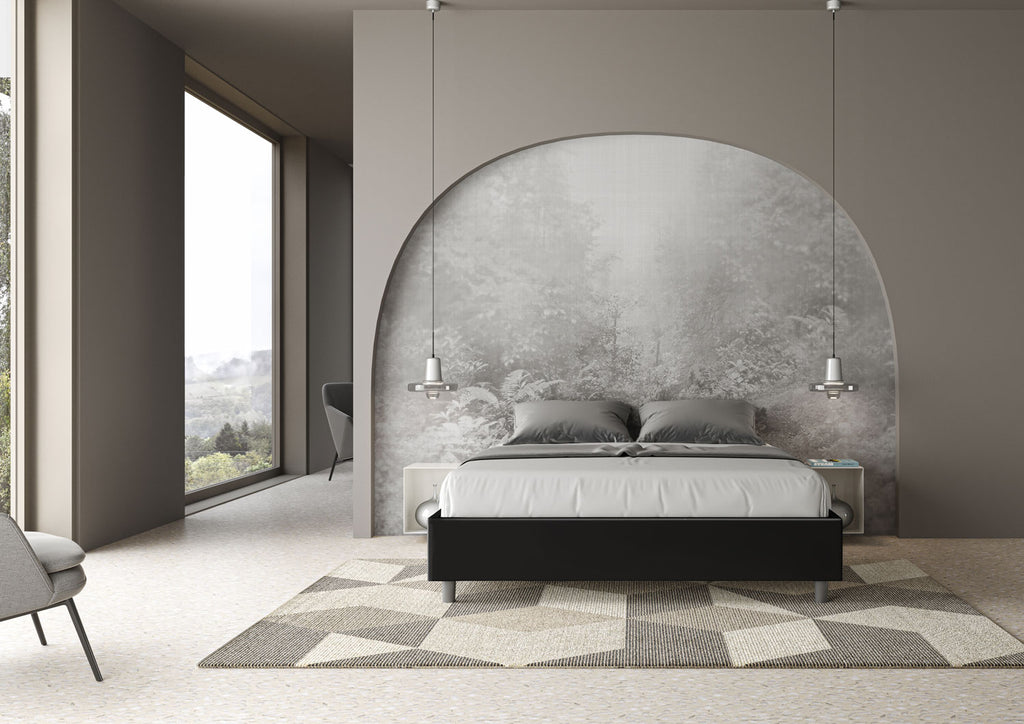 Letto Matrimoniale Senza Testata Imbottito in Similpelle Azelia Nero Varie Misure