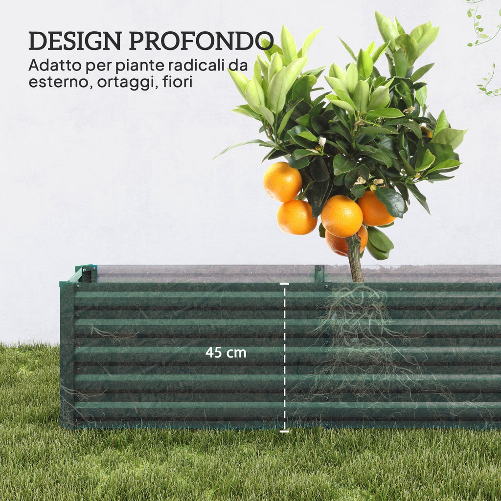 Letto per Orto a Fondo Aperto 240x40x45 cm con Bordi Arrotondati in Acciaio Zincato Verde