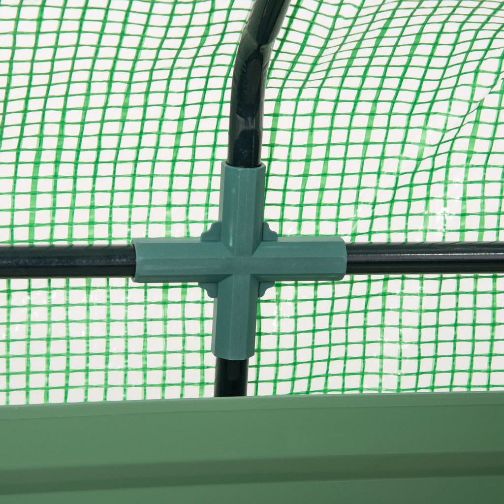 Sie lieben Gartenarbeit und möchten das ganze Jahr über anbauen? Mit diesem Gartengewächshaus mit Hochbeet haben Sie alles, was Sie brauchen. Die Kombination aus Hochbeet und Gewächshaus bietet Ihren Pflanzen einen warmen und sicheren Wachstumsraum. Dieses Set besteht aus massivem lackiertem Stahl mit einer strapazierfähigen Kunststoffabdeckung und ist für den Außenbereich geeignet. Mit unserem mit einem Hochbeet ausgestatteten Gemüsegarten-Gewächshaus hält keine Jahreszeit Ihre Lust auf Grün auf!