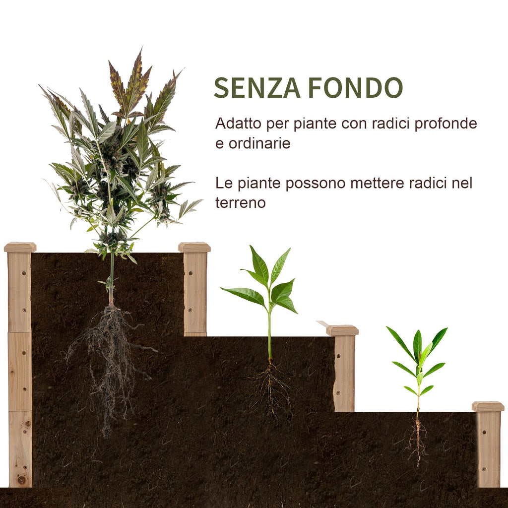 Das einfache Aussehen von Naturholz verbindet sich mit der Schönheit von Pflanzen, um Ihnen einen Raum zu geben, um Blumen und Gemüse mit einer dekorativen Note anzubauen. Das 3-stufige Design dieses Gemüsebeets ermöglicht es den Pflanzen, ausreichend Licht zu erhalten und die richtige Bodentiefe zum Wachsen zu haben. Sein filigranes Design macht diese Struktur auch perfekt als Pflanzgefäß aus Holz, um alle Ihre Pflanzen in einem angenehmen natürlichen dekorativen Rahmen zu beherbergen.