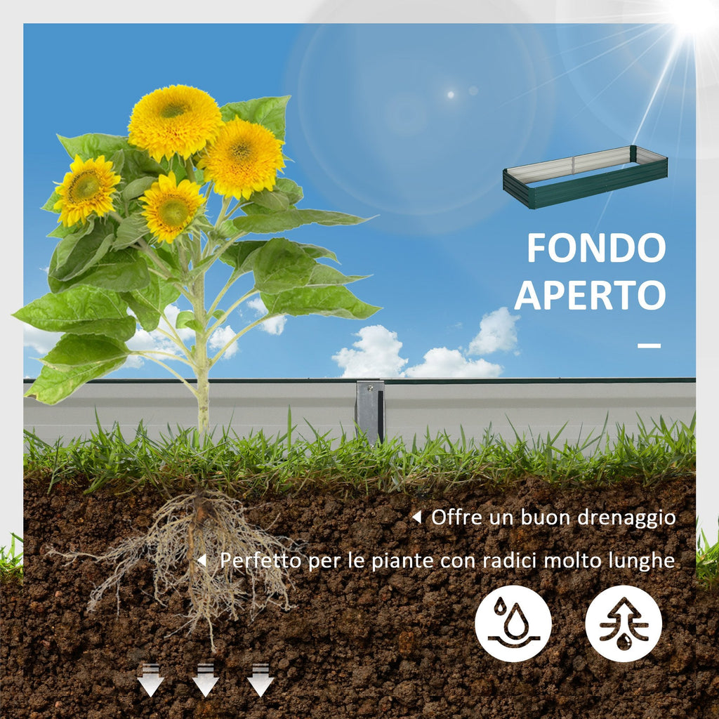 Gartenbeet mit Hochbeet 241 x 90,5 x 30 cm aus grünem Metall