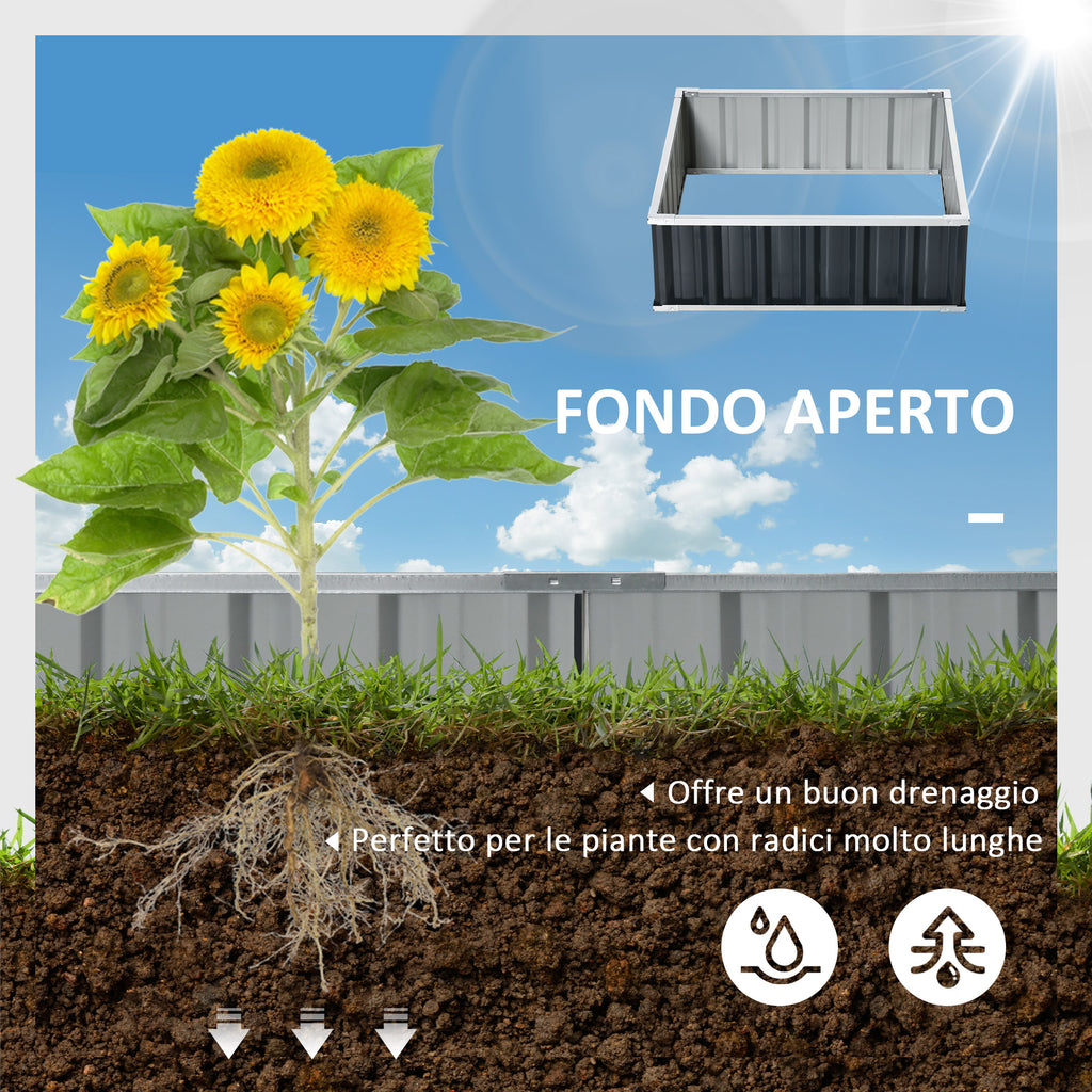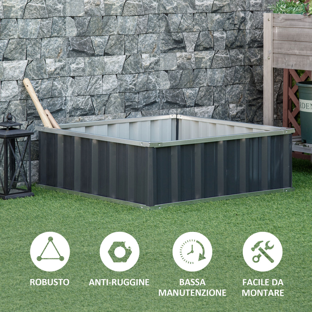 Gartenbeet mit Hochbeet 90 x 90 x 30 cm aus dunkelgrauem Stahl