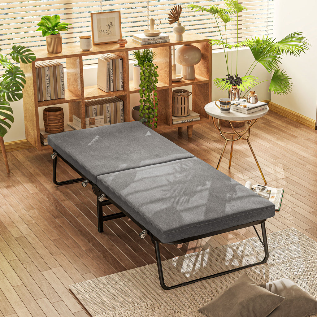 Letto Singolo Brandina Pieghevole 180x70x38 cm Materasso in Tessuto Effetto Lino Grigio
