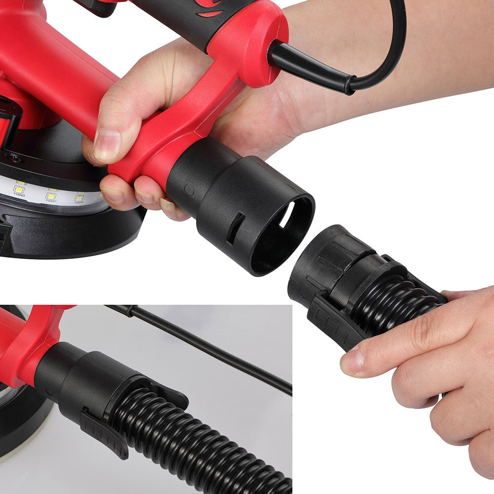 La levigatrice per cartongesso di è dotata di una particolare testa ergonomica che rende più facile l'accesso a qualsiasi angolo e angolazione, raggiungendo con la massima facilità ogni punto della parete, inoltre la luce a LED che circonda la testa della levigatrice illumina l'area circostante a quest'ultima permettendo di lavorare anche in situazioni di scarsa luminosità con il massimo della facilità.