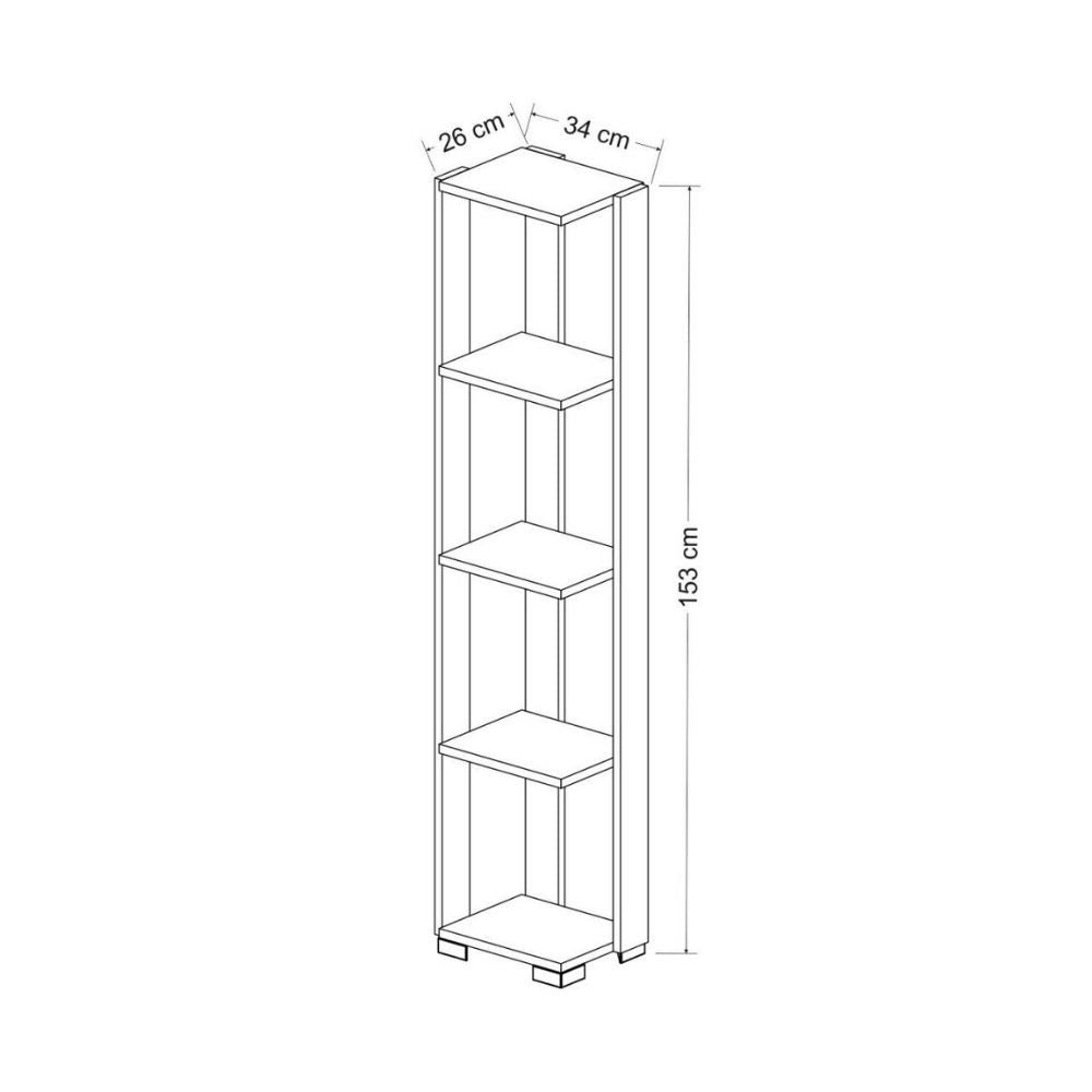 Libreria 34x153 cm 5 ripiani antracite dettagli noce