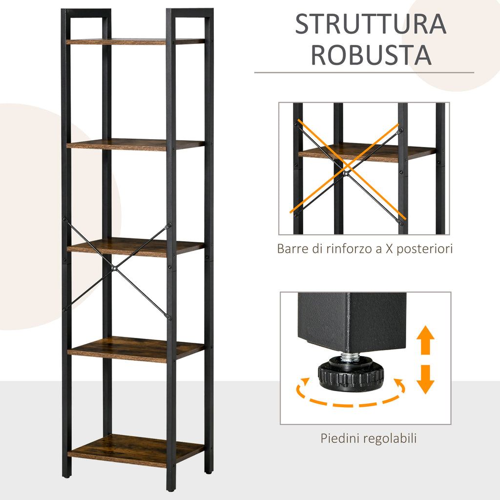 Bücherregal 5 Regale 40 x 30 x 154 cm aus rustikalem braunem Holz und Stahl