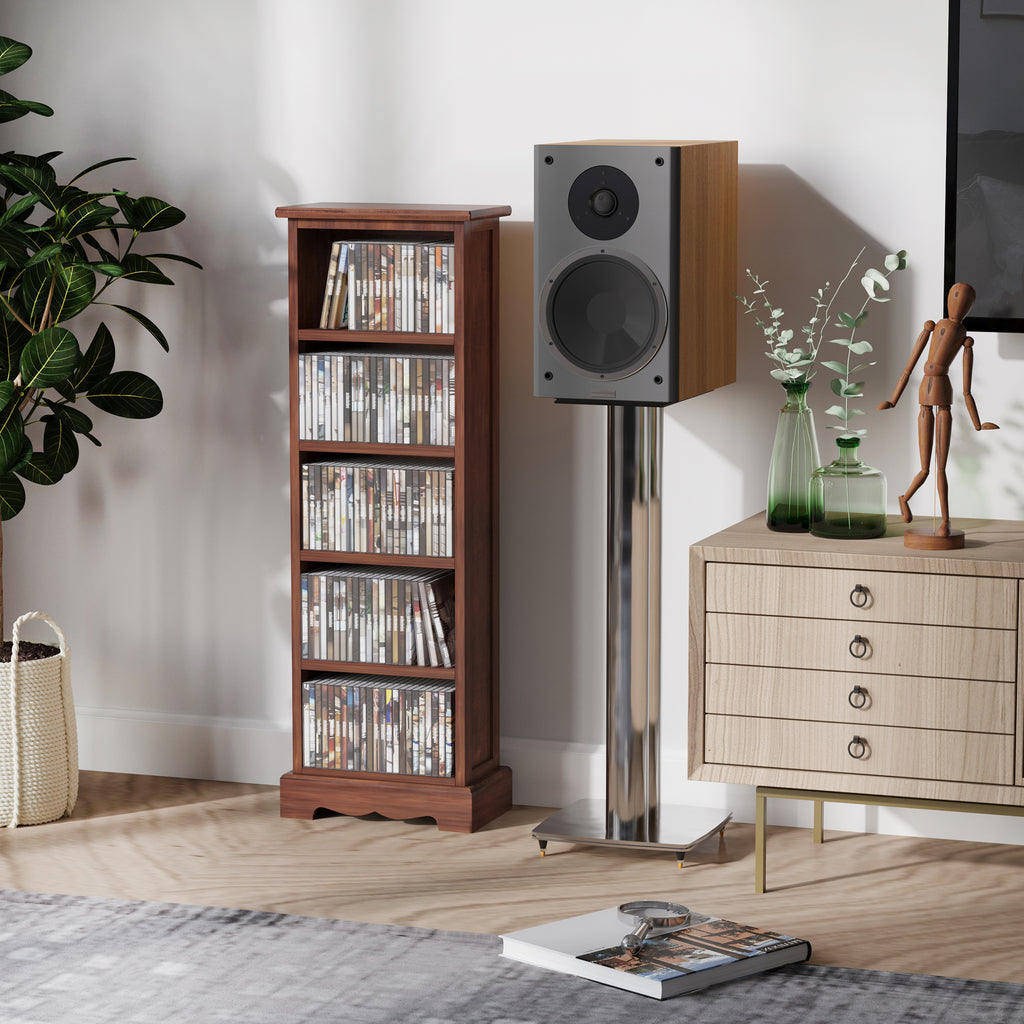 Er verfügt über insgesamt 5 Ablagen und bietet ausreichend Platz für bis zu 115 CD-Einheiten oder Bücher, Krimskrams oder andere Gegenstände.