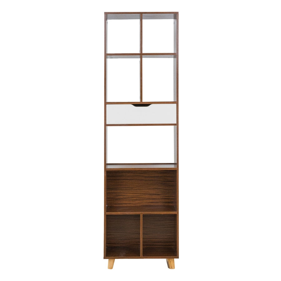 Con questo mobile libreria a 8 ripiani e 1 cassetto potrai arredare i tuoi interni con uni stile inconfondibile garantendoti allo stesso tempo funzionalità. Possiede 3 ripiani chiusi dal pannello posteriore e altri 5 aperti, il che rende questa libreria ottima sia come mobile da parete che come divisorio. La sua struttura in legno melanimico con lo spessore di 15 mm gli conferisce grande solidità e la sua finitura con effetto zebrano che abbraccia il cassetto bianco opaco con maniglia a scomparsa gli dona uno stile originale.