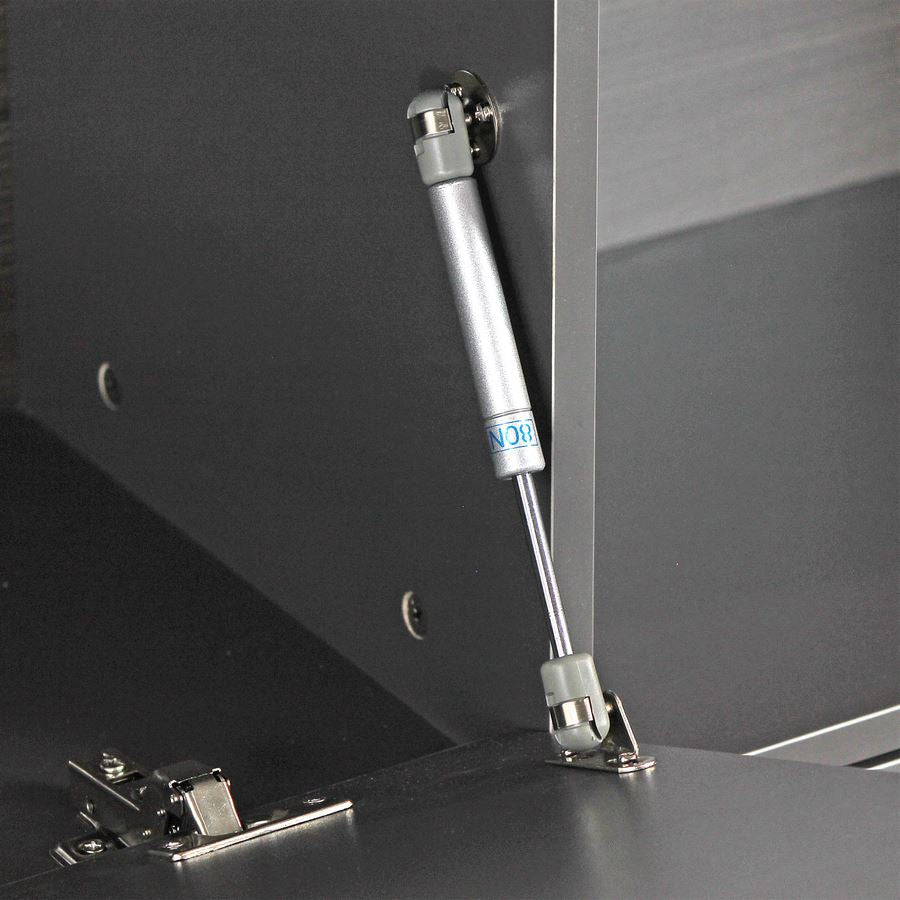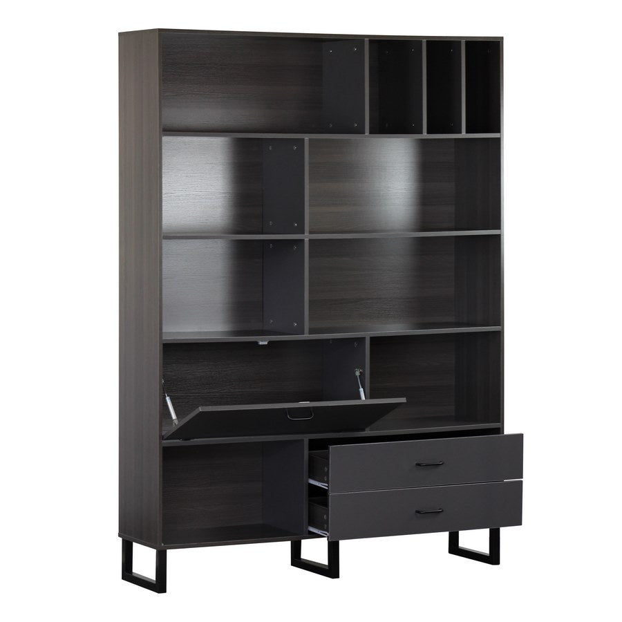 Il mobile libreria Iron rappresenta un elemento d'arredo moderno e contemporaneo e allo stesso tempo versatile e funzionale. Presenta due cassetti, un'anta a ribalta con due pistoni e otto scomparti a vista.