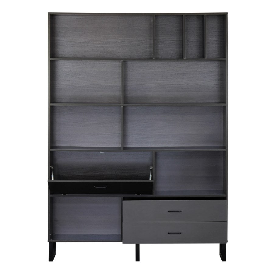 Libreria 8 vani 2 cassetti 1 anta 140x195x35 cm in legno effetto olmo scuro e grigio
