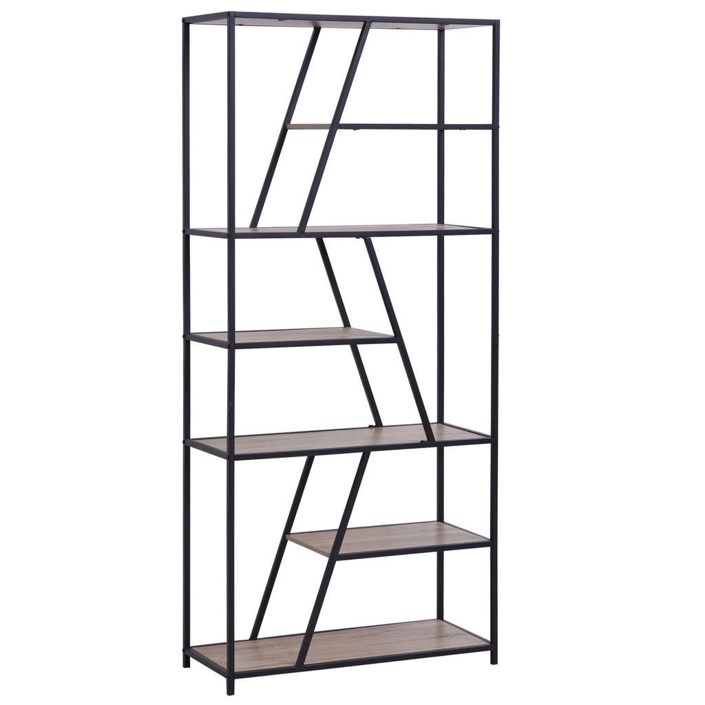 Möchten Sie einen Ort finden, an dem Sie Ihre Sammlungen ausstellen können? Das Bücherregal ist Ihre ideale Wahl, es zeichnet sich durch eine Mischfarbe aus Schwarz und Holz und eine Linie mit asymmetrischem Design aus, elegant und modern, es passt perfekt zur Einrichtung Ihres Zimmers, Arbeitszimmers oder Büros. Mit 9 trapezförmigen offenen Regalen bietet es genügend Platz zum Sortieren von Gegenständen und macht Ihr Zuhause aufgeräumt. Hergestellt aus Spanplatten, Metallrahmen, langlebig. Mit Anti-Rollover-Design, sehr sicher.