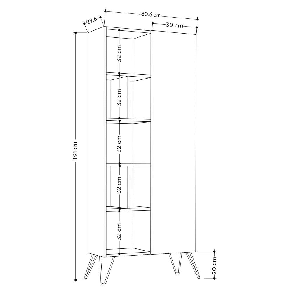 - Dispone di 1 anta battente e 7 ripiani, offrendo ampio spazio per organizzare libri e oggetti decorativi