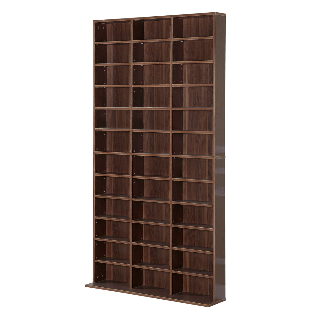 Dieses Wandbücherregal verfügt über 3 Säulen mit insgesamt 36 höhenverstellbaren Fächern.