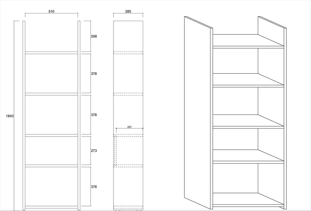Wand-Bücherregal mit 5 Melaminböden, das Ihren Möbeln eine schicke Note verleiht. Es ist mit der kratzfesten TFT-Behandlung der Boost-Serie behandeltMerkmale: