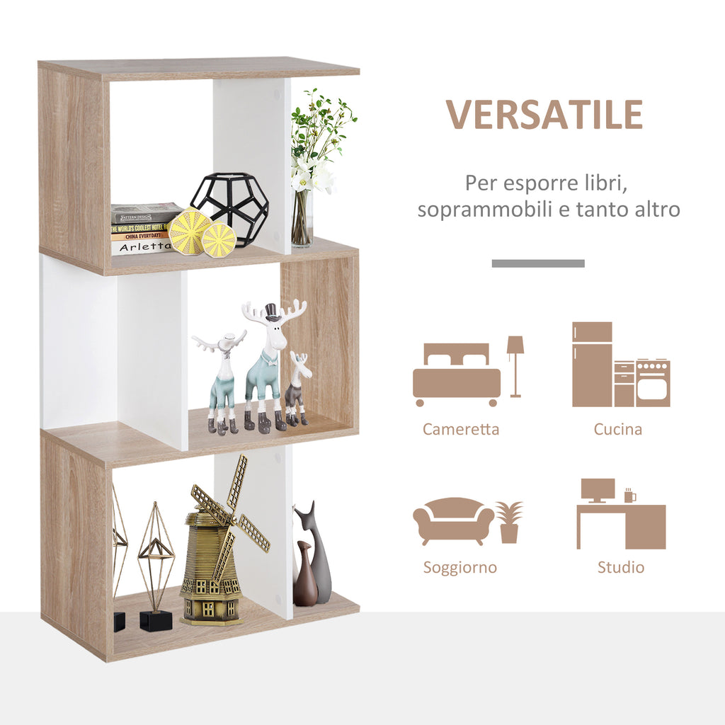 Modernes Wand-Bücherregal mit 3 Naturholz- und weißen Regalen 60 x 24 x 111,4 cm