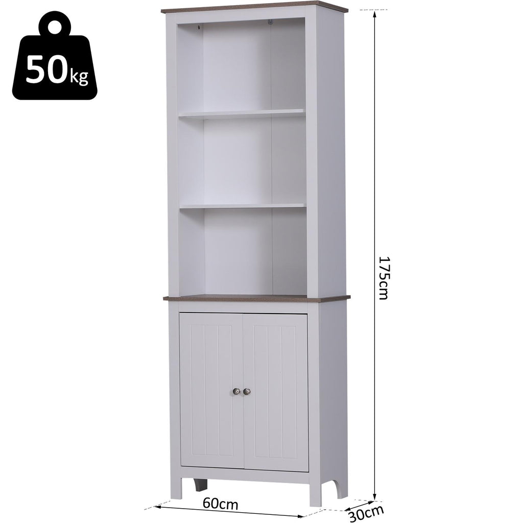 Bücherregal aus Holz mit 3 Regalen und weißen Türen 60x30x175 cm