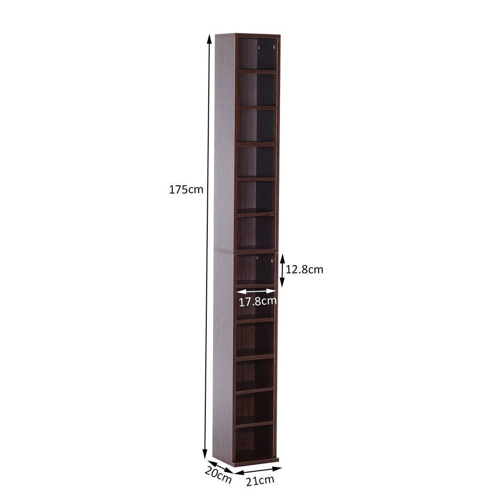 Wandsäulenschrank Bücherregal mit braunen Holzregalen 21x20x175 cm