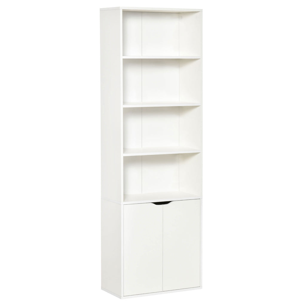 Modernes Bücherregal 4 Regale 59 x 29 x 180 cm mit 2-türigem Schrank aus weißem Holz