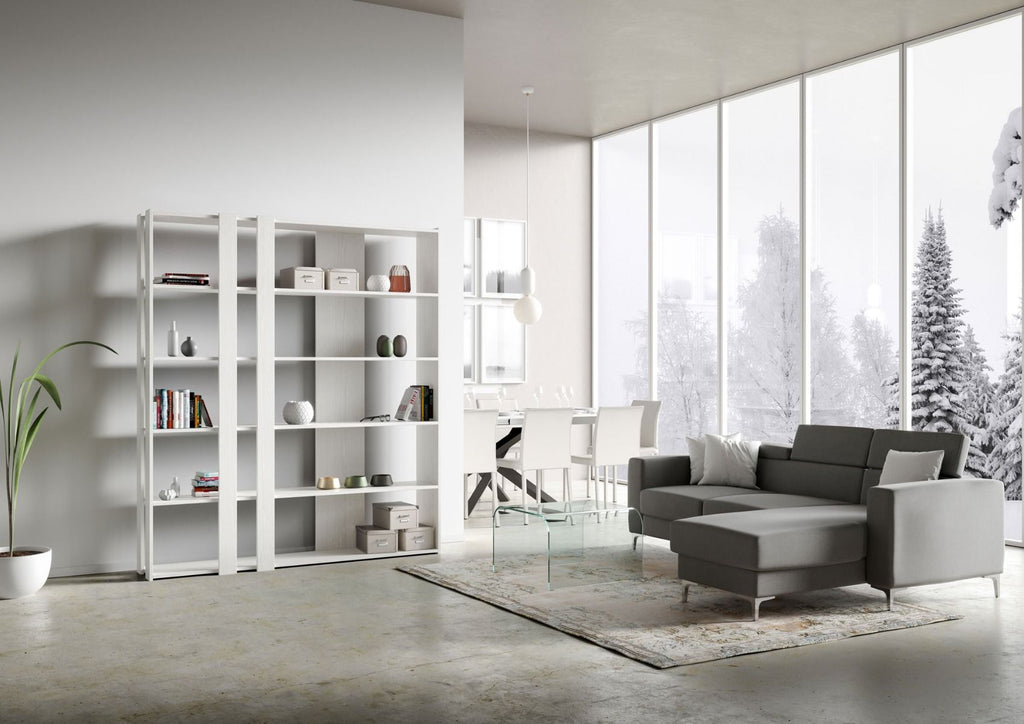 Libreria Kato C. La libreria Kato viene proposta nella versione con 4 fasce 10 cm due nella parte anteriore e due nella parte laterale e due pannelli di cm 32 uno nellaparte laterale e uno nella parte posteriore. Piani in microparticelle di legno disponibile in vari colori. Realizzata interamente in Italia mediante l'utilizzo di materiali 100% italiani.