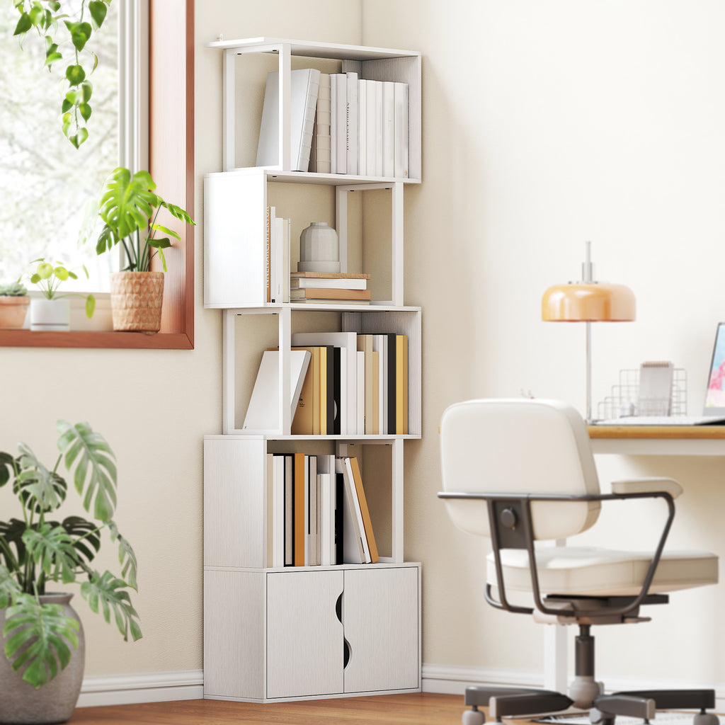 - STRUTTURA A 5 LIVELLI CON SPAZIO NASCOSTO: Con quattro scomparti aperti e un armadietto a doppia anta, questa libreria moderna organizza perfettamente tutto, dai libri ai piccoli oggetti di uso quotidiano che preferisci non mostrare