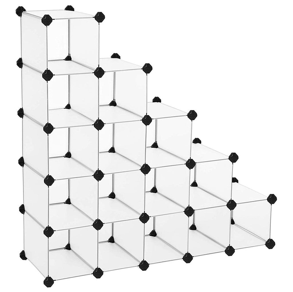 Müssen Sie Ihr Zuhause neu organisieren und haben wenig Platz zur Verfügung? Wenn Sie die Unordnung satt haben, ist dies die Lösung für Sie.Dieses Regal aus widerstandsfähigem PVC mit Metallkanten lässt Ihnen viel Freiheit, um den Freiraum in Ihrem Zuhause zu optimieren: Mit den 53 Paneelen im Paket können Sie so große Würfel zusammenstellen Sie können dank der ineinandergreifenden Haken im Paket nach Belieben zusammenbauen und überlappen. Es kann als Lagerregal, Bücherregal, Schuhregal oder Spielzeugregal verwendet werden.