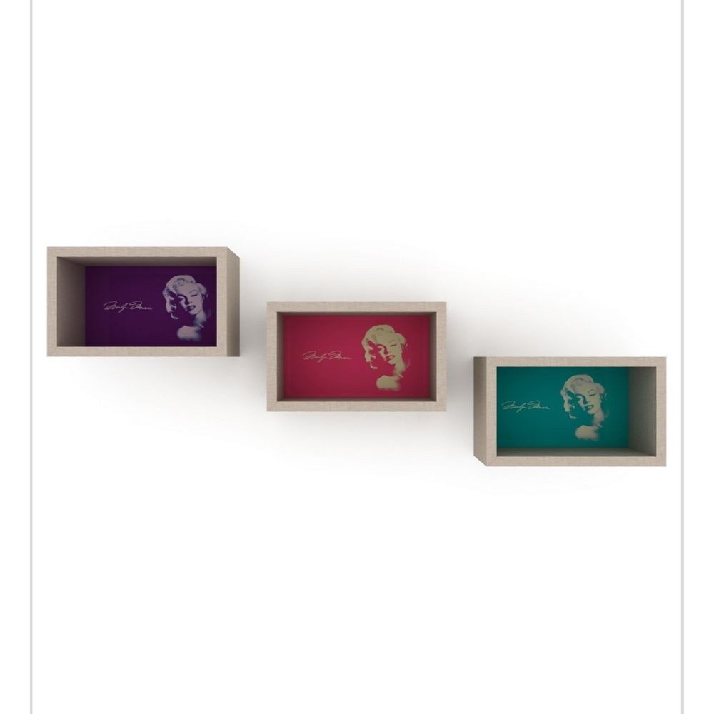 Libreria pensile composta da 3 quadri Monroe. Set di 3 quadri pensili, ideali da usare come libreria o porta oggetti. Sul retro viene rappresentata in vari colori, la celebre MARILYN MONROE. Puoi disporli a tuo piacimento , per produrre soluzioni funzionali e decorative, che meglio si sposano con i tuoi ambienti.