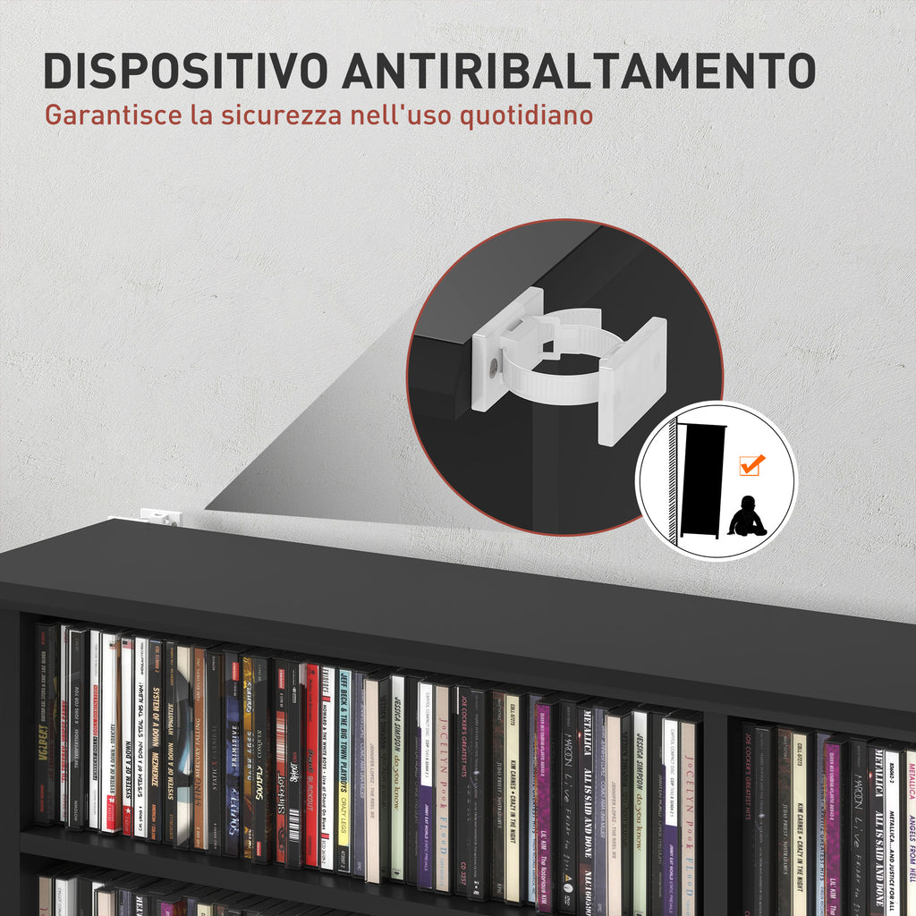 - STRUTTURA STABILE E SICURA: Costruito con truciolato di alta qualità e dotato di una cinghia antiribaltamento, questo scaffale porta CD assicura la giusta stabilità e sicurezza, proteggendo la tua preziosa collezione