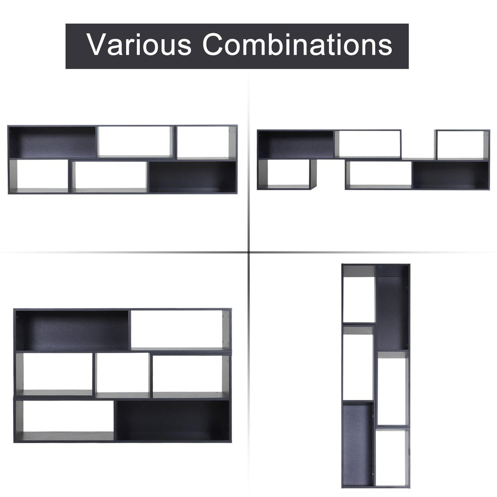 Bücherregal im modernen Stil für Wohnzimmer, Wohnzimmer, Arbeitszimmer, Büro, Bücherregal, Bücherregal, TV-Ständer, 2-teilig, 2 L-förmig, Kombinierbare Aufbewahrungseinheit, Schwarz