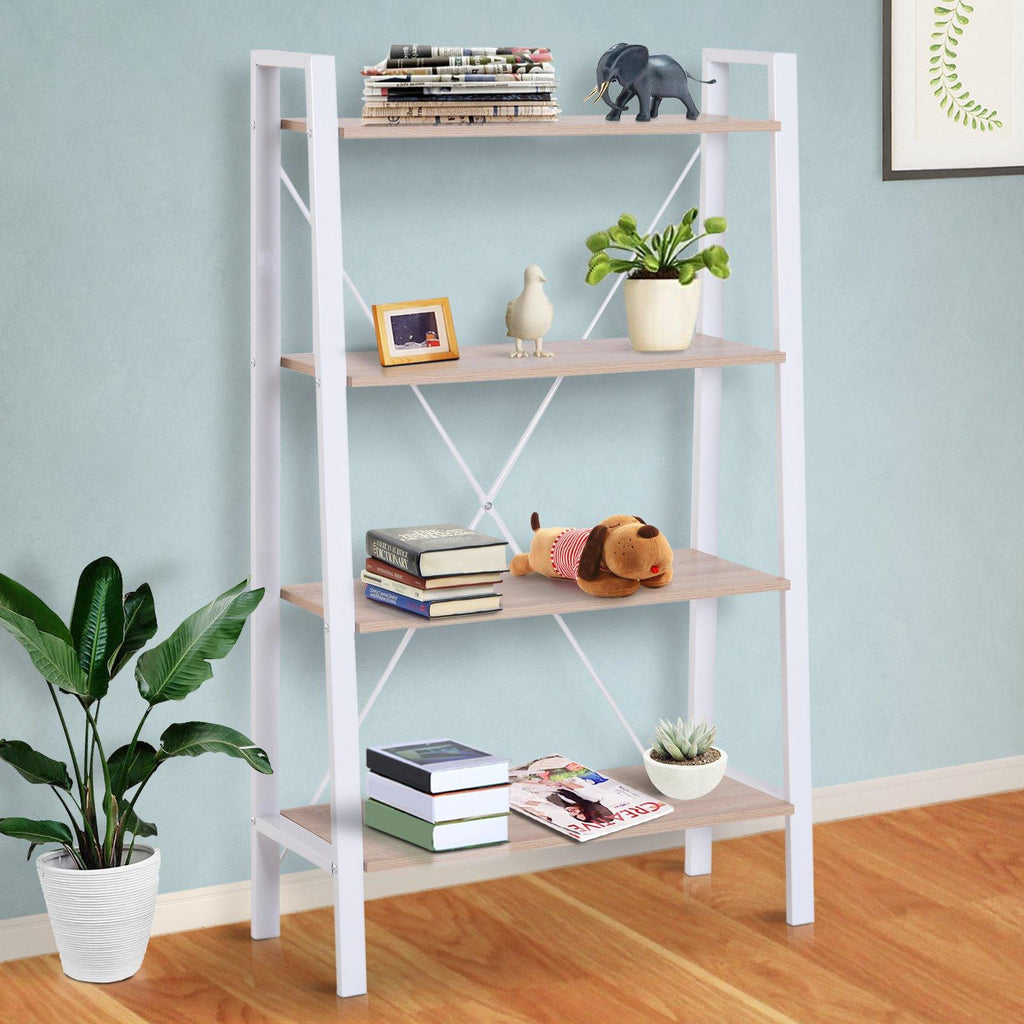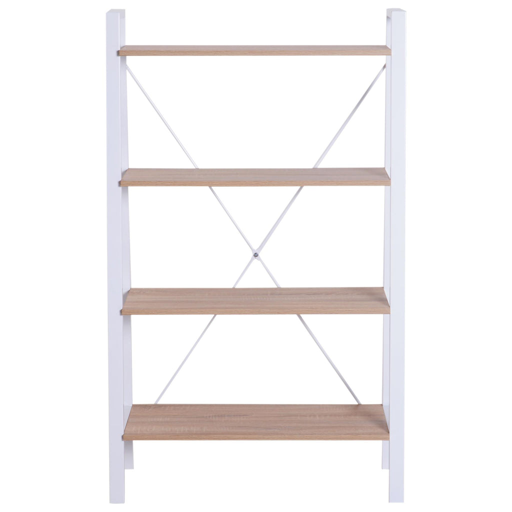 Bücherregal Leiter 4 Regale aus Holz und Stahl Weiß und Eiche 80x33x133,5 cm